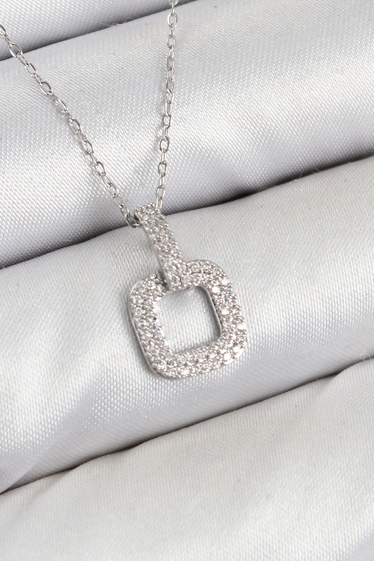 Pirinç Zirkon Taşlı Kare Model Gümüş Renk Kadın Kolye - BKO10409