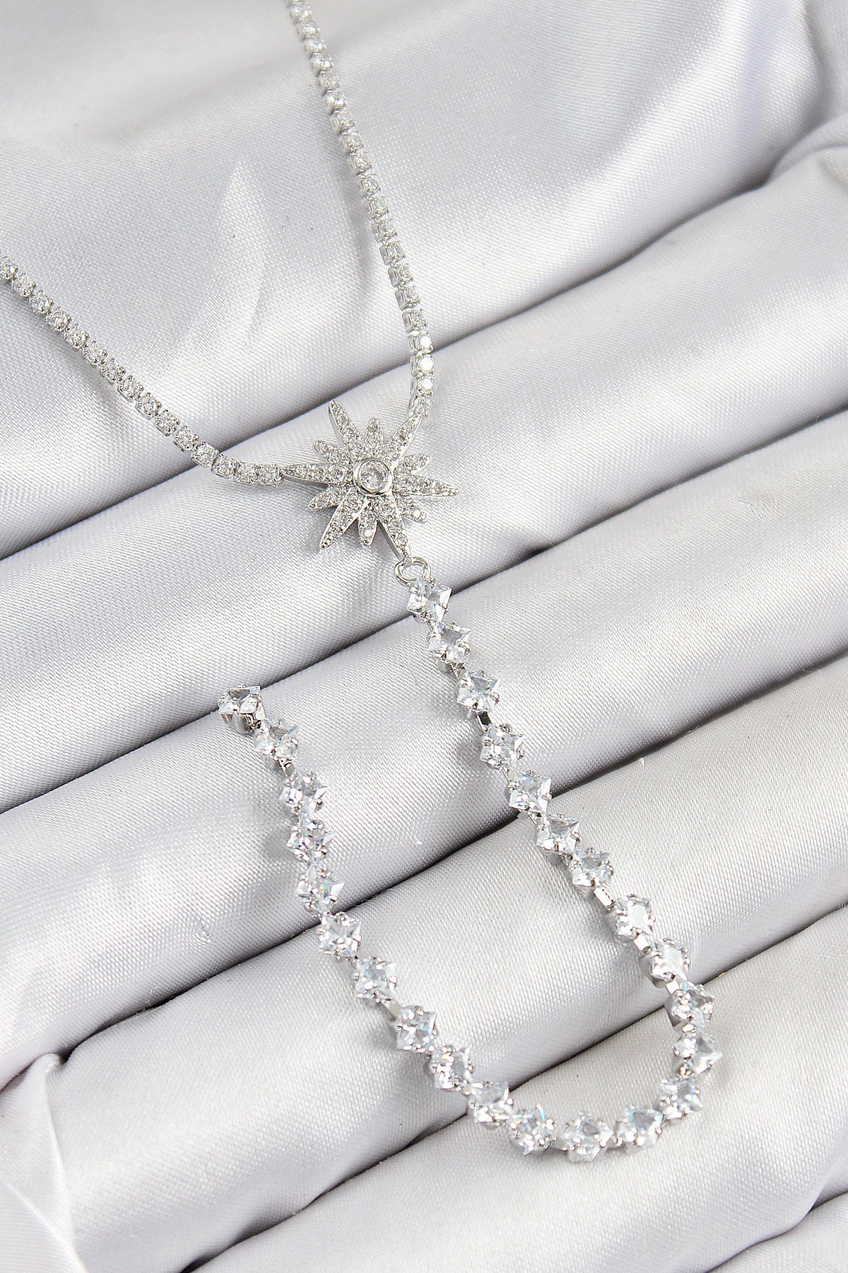 Pirinç Zirkon Taşlı Kutup Yıldızı Model Gold Renk Y Kolye - BKO10449