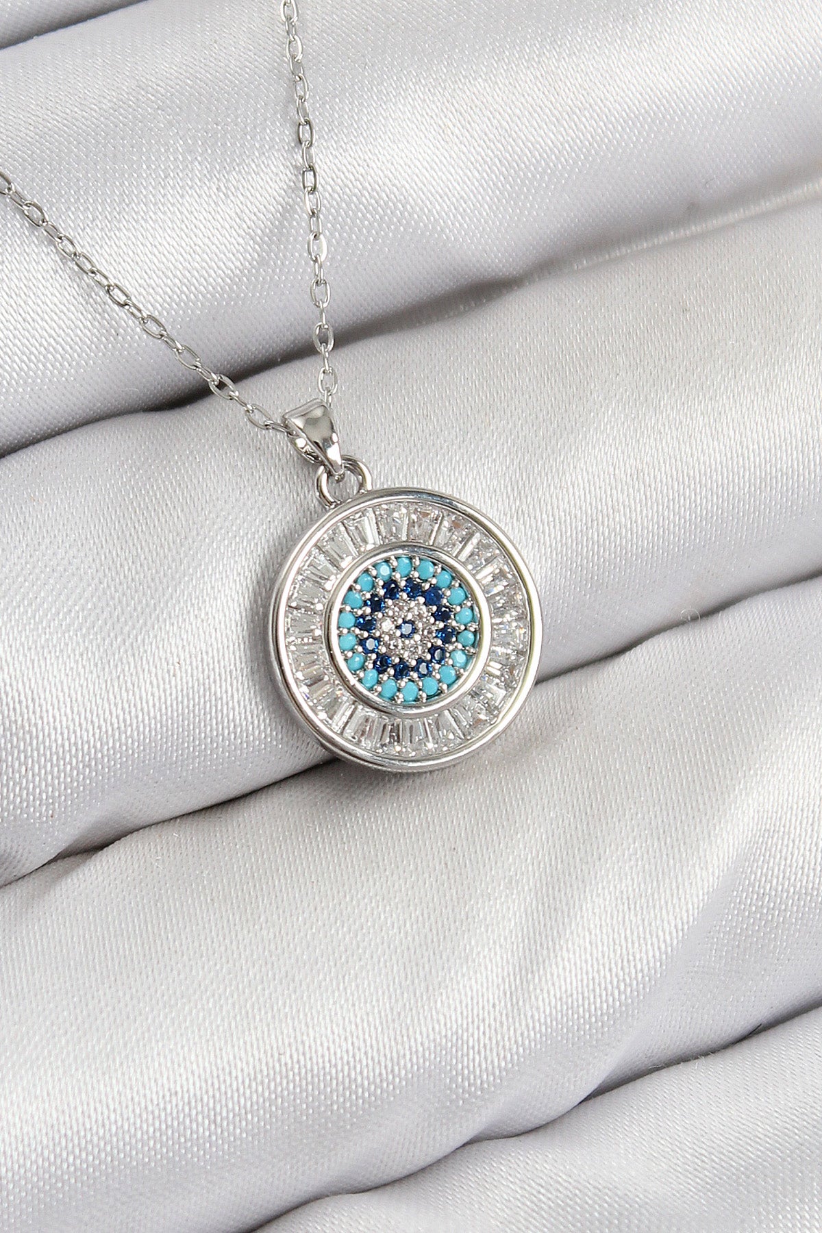 Pirinç Zirkon Taşlı Su Yolu Nazar Model Gümüş Renk Kadın Kolye - BKO10429