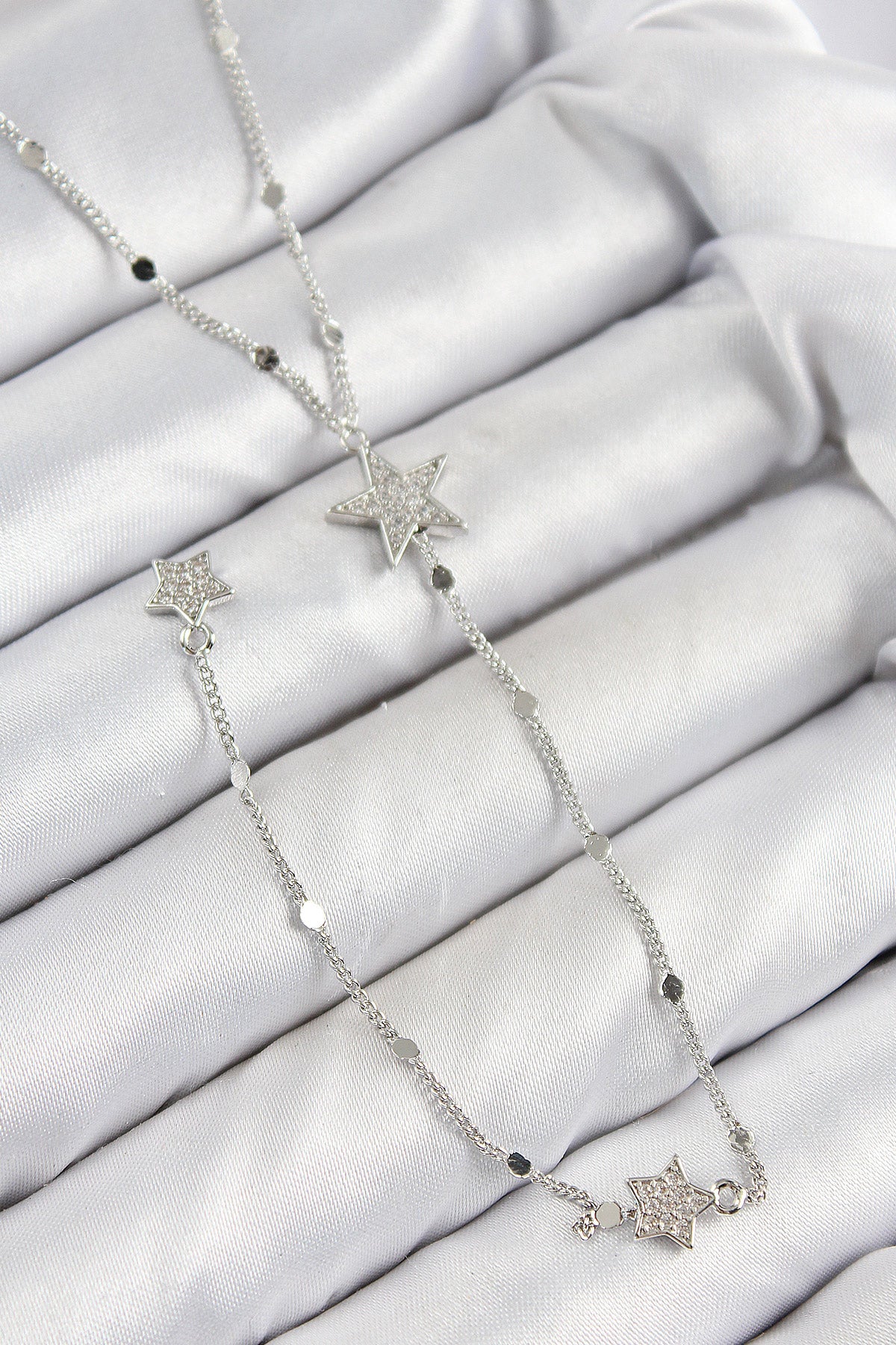 Pirinç Zirkon Taşlı Yıldız Model Gümüş Renk Y Kolye - BKO10455