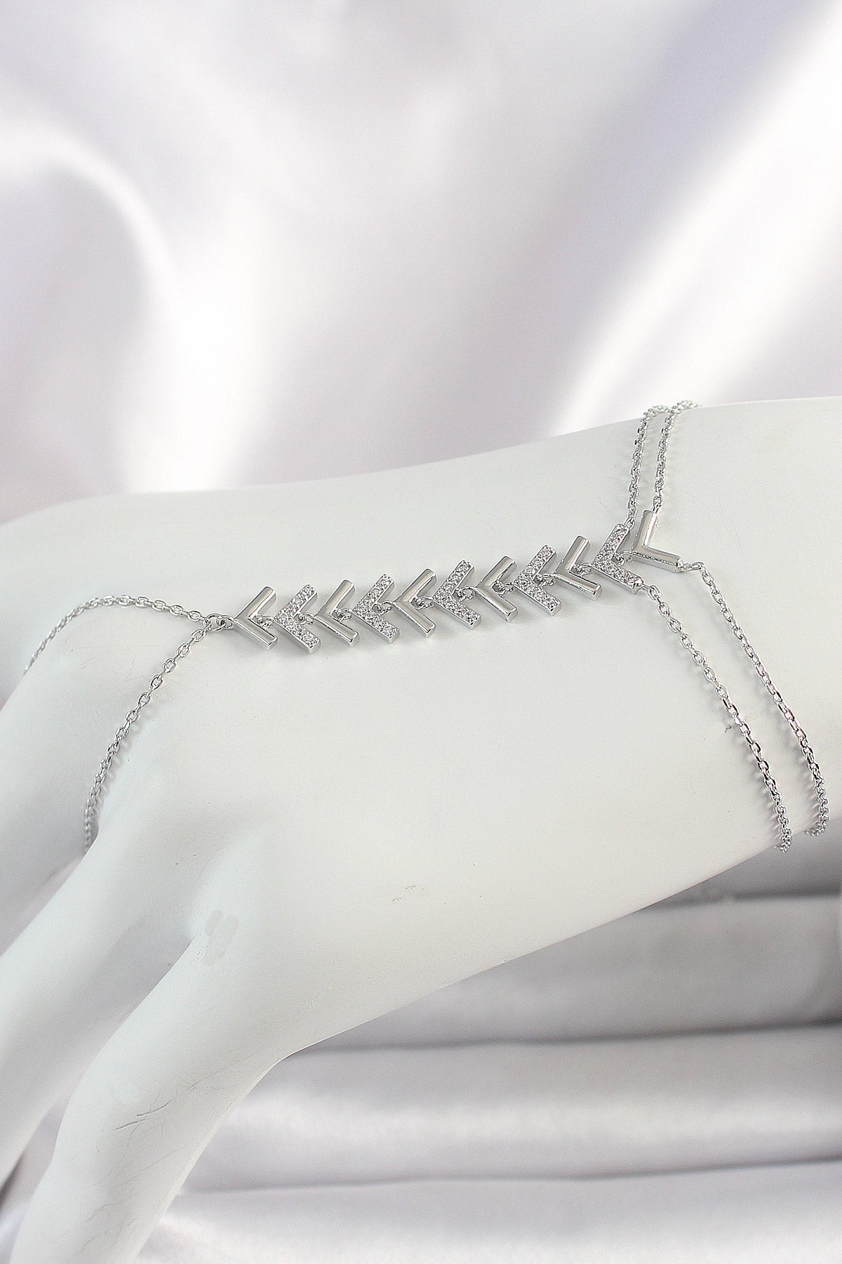 - Ürün Adı: Pirinç Gümüş Renk Zirkon Taşlı V Model Kadın Şahmeran