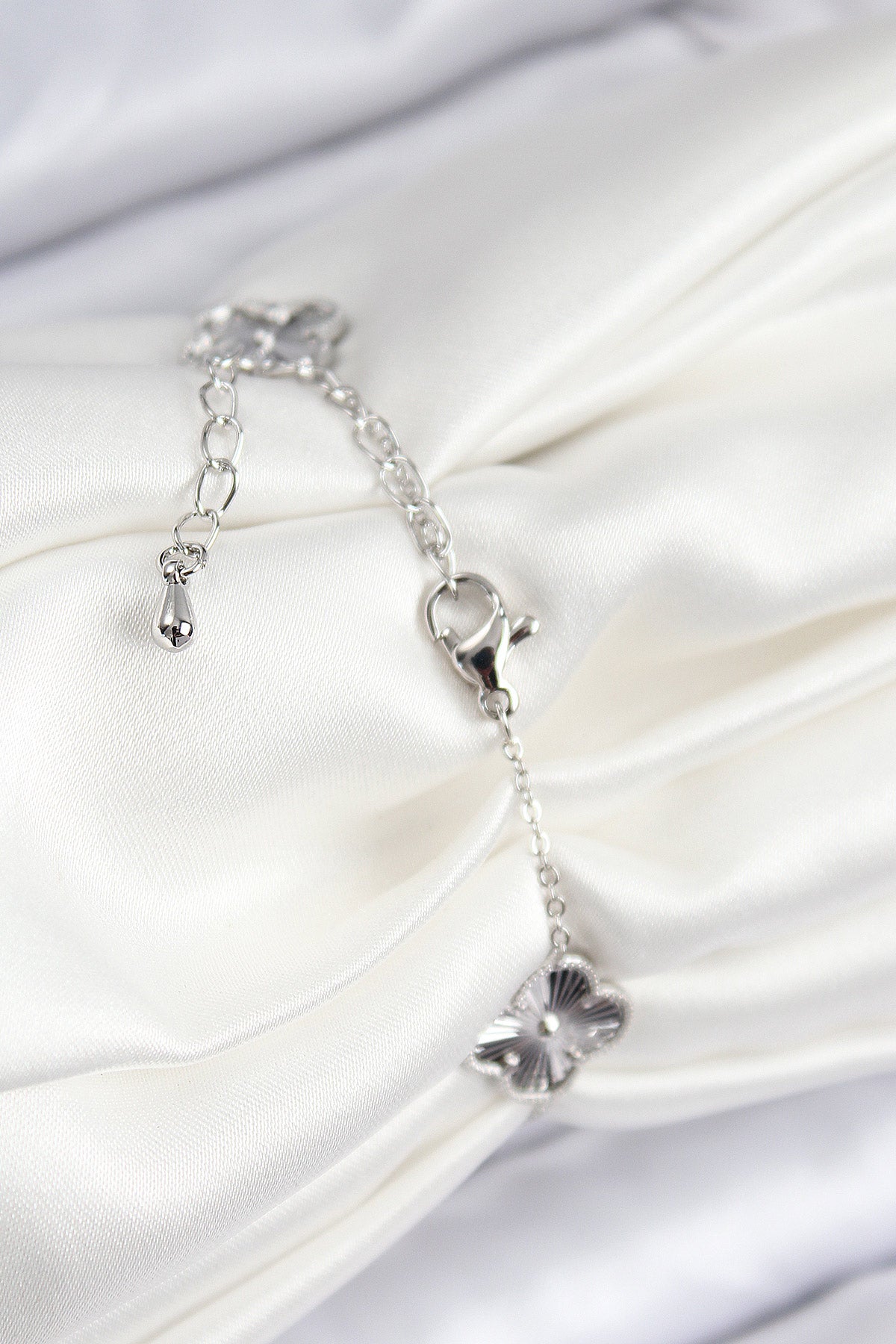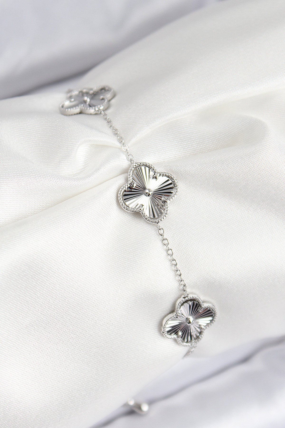 VIP Pirinç Yonca Model Gümüş Renk Kadın Bileklik - BB7782