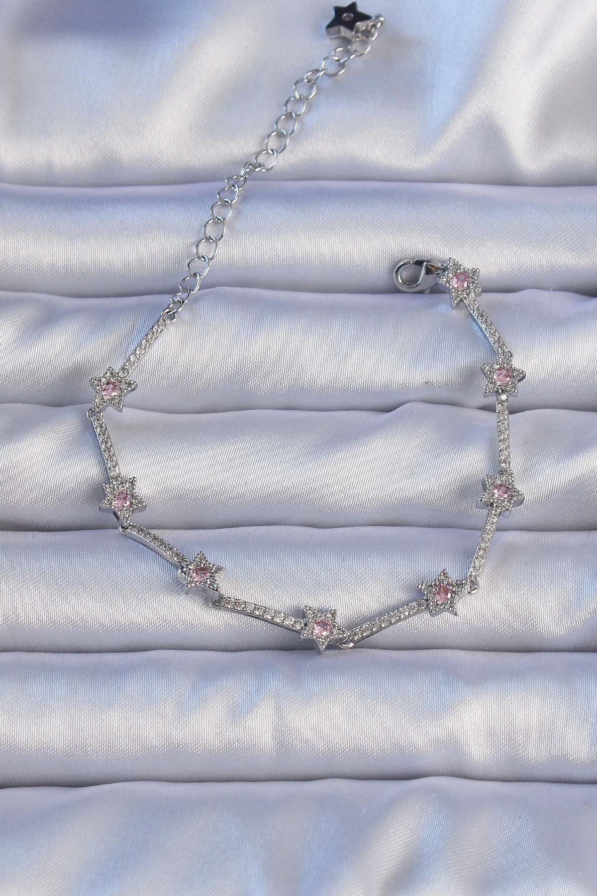 Vip Seri Pirinç Gümüş Renk Zirkon Taşlı Halley Yıldız Model Bileklik - BB6300