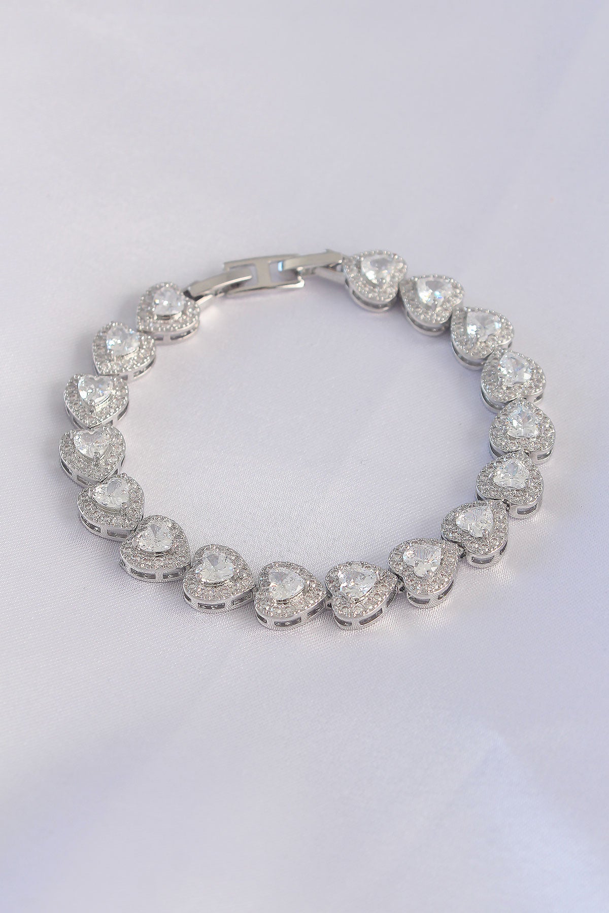 Vip Seri Pirinç Zirkon Taşlı Gümüş Renk Kalp Model Bileklik - BB6073