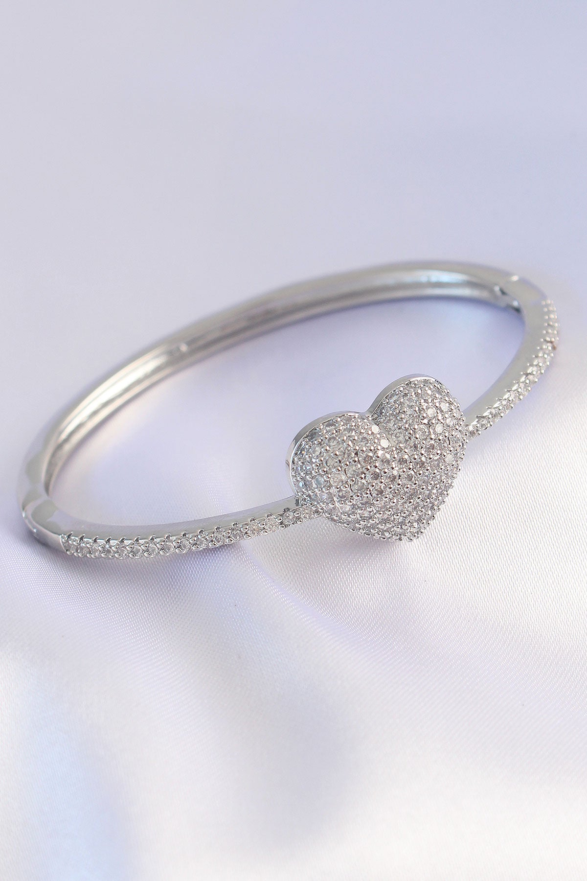 Vip Seri Pirinç Zirkon Taşlı Gümüş Renk Kalp Model Kelepçe - BB6082