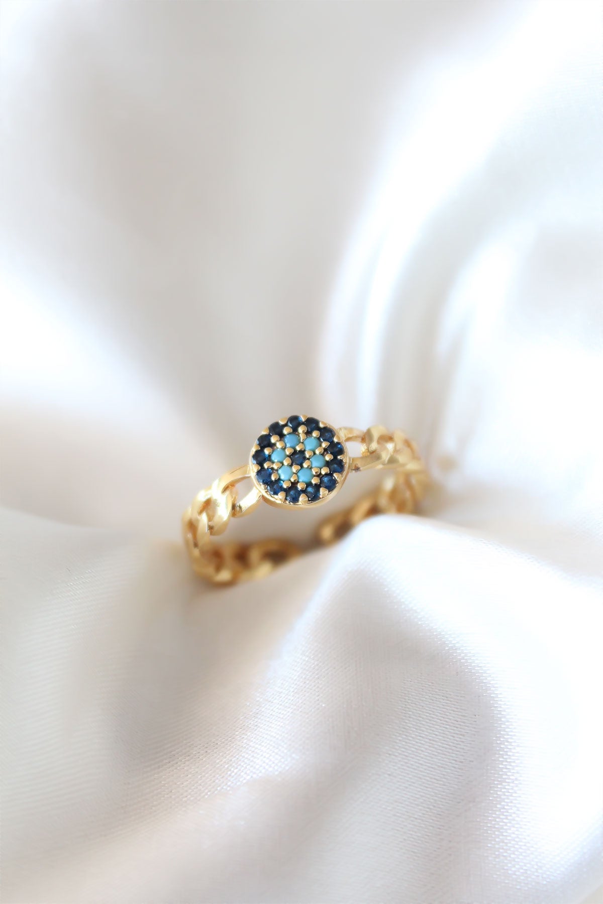 Zirkon Taşlı Nazarlı Altın Kaplama Kadın Yüzük - BYK2319